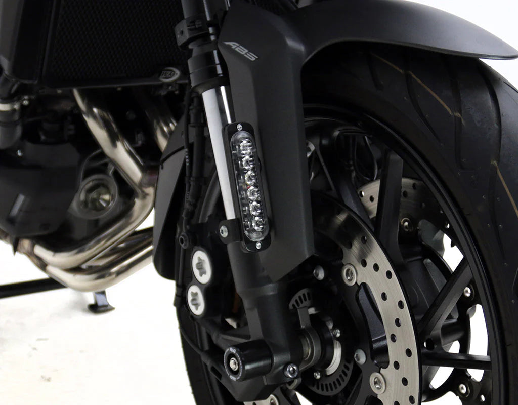 This Daytime Running Light Kit was designed to mount a pair of DENALI DRL pods to the front fender of your bike to create maximum visibility to oncoming traffic. This kit directly replaces your original M5 or M6 fender hardware securing the DRL’s close to the fender for a sleek low-profile installation.